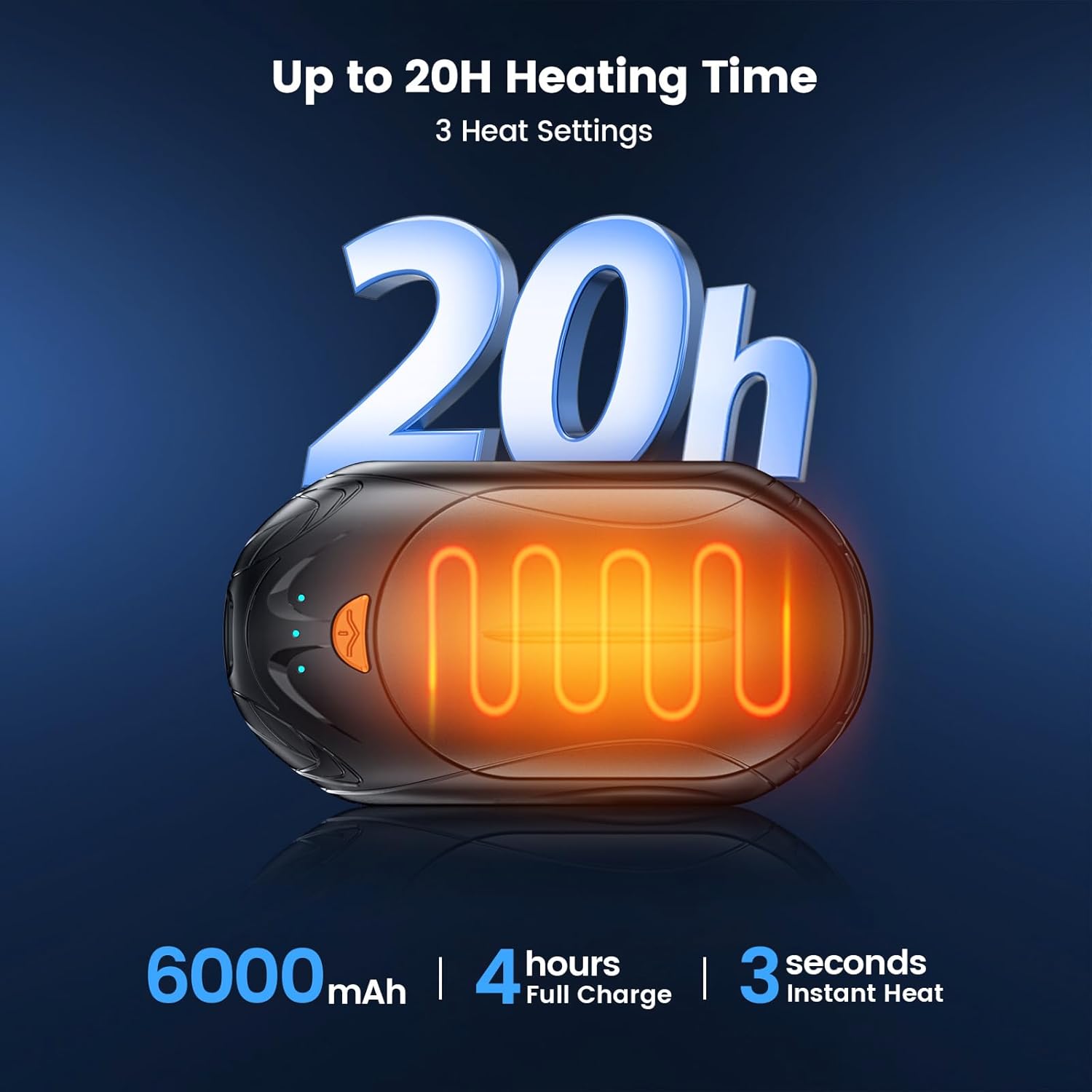 【Hand Warmers with Long Battery Life】Hand warmers rechargeable 2 pack with 6000mAh,a single full charge will up to 20 hours of use,2-in-1 large battery capacity electric hand warmers can meet the needs of one day's use,no longer afraid of the cold of winter