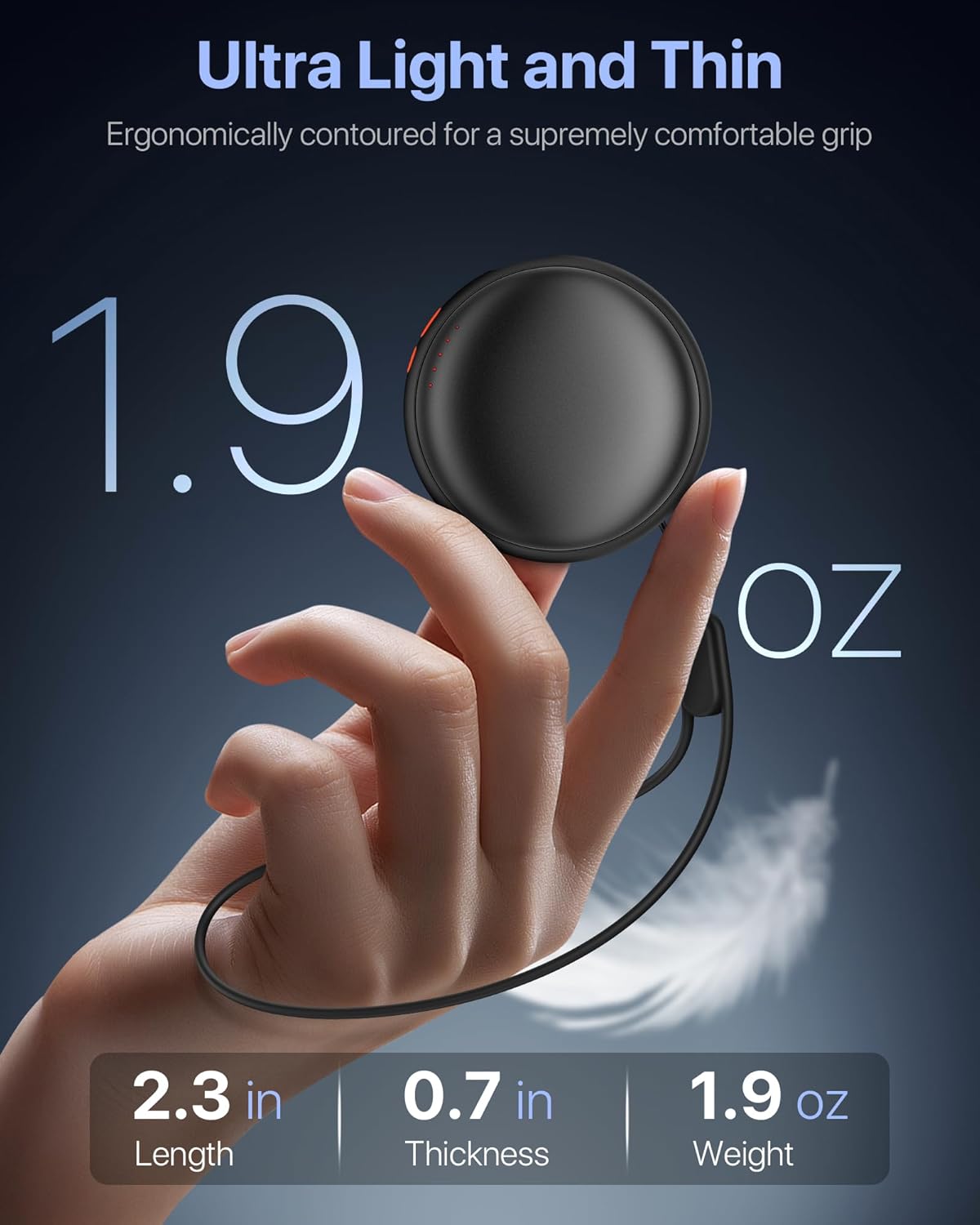 Ultra-Thin and Portable: Palm-sized, circular design fits perfectly in your hand, pocket, or glove. Weighs only 1.9 ounces, thickness 0.6 inches, 30% lighter than similar models, ideal for carrying around.