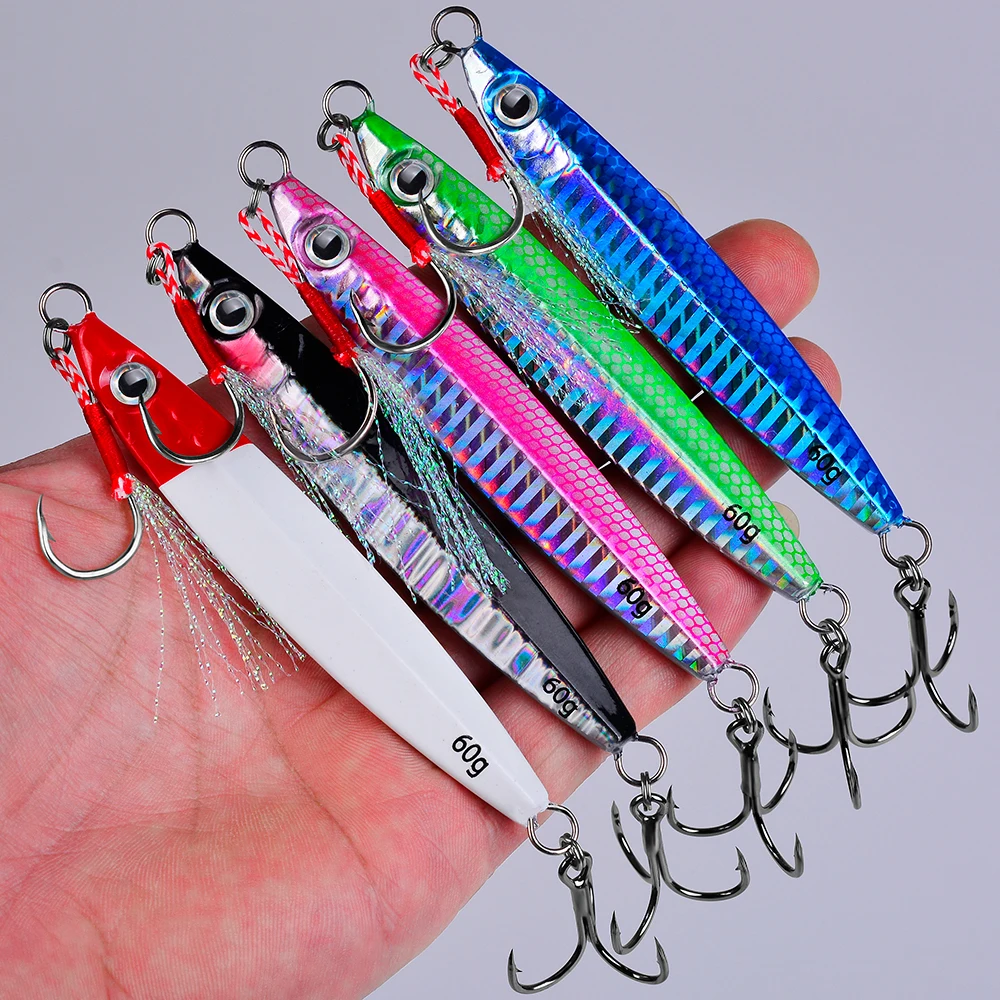 PROBEROS 5Pcs 3D Eyes Metal Jig Lure 10g 15g 20g 30g 40g 60g Bionic Bait Saltwater Shore Casting Fishing Lure Fishing Tackle
