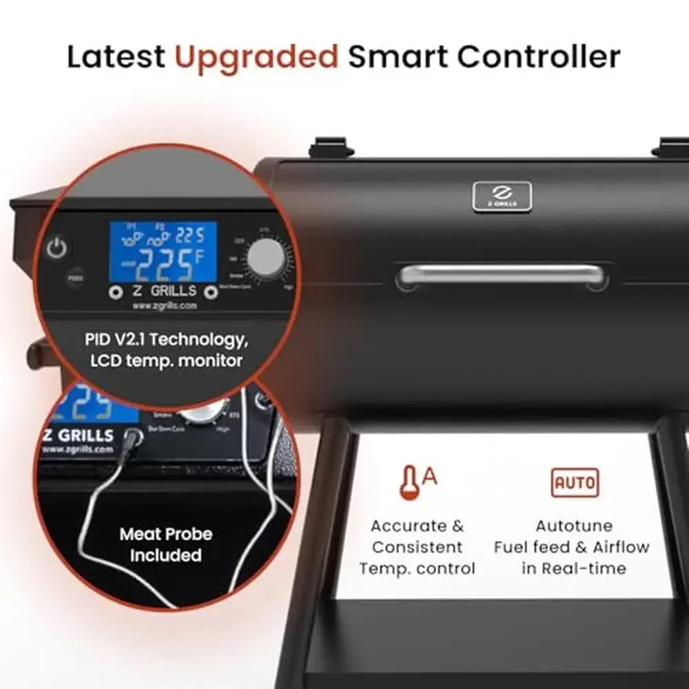 Upgrade Wood Pellet Smoker BBQ Grill 8 in 1 LCD Controller Auto Temperature Control Meat Probe Included High-Temperature Steel