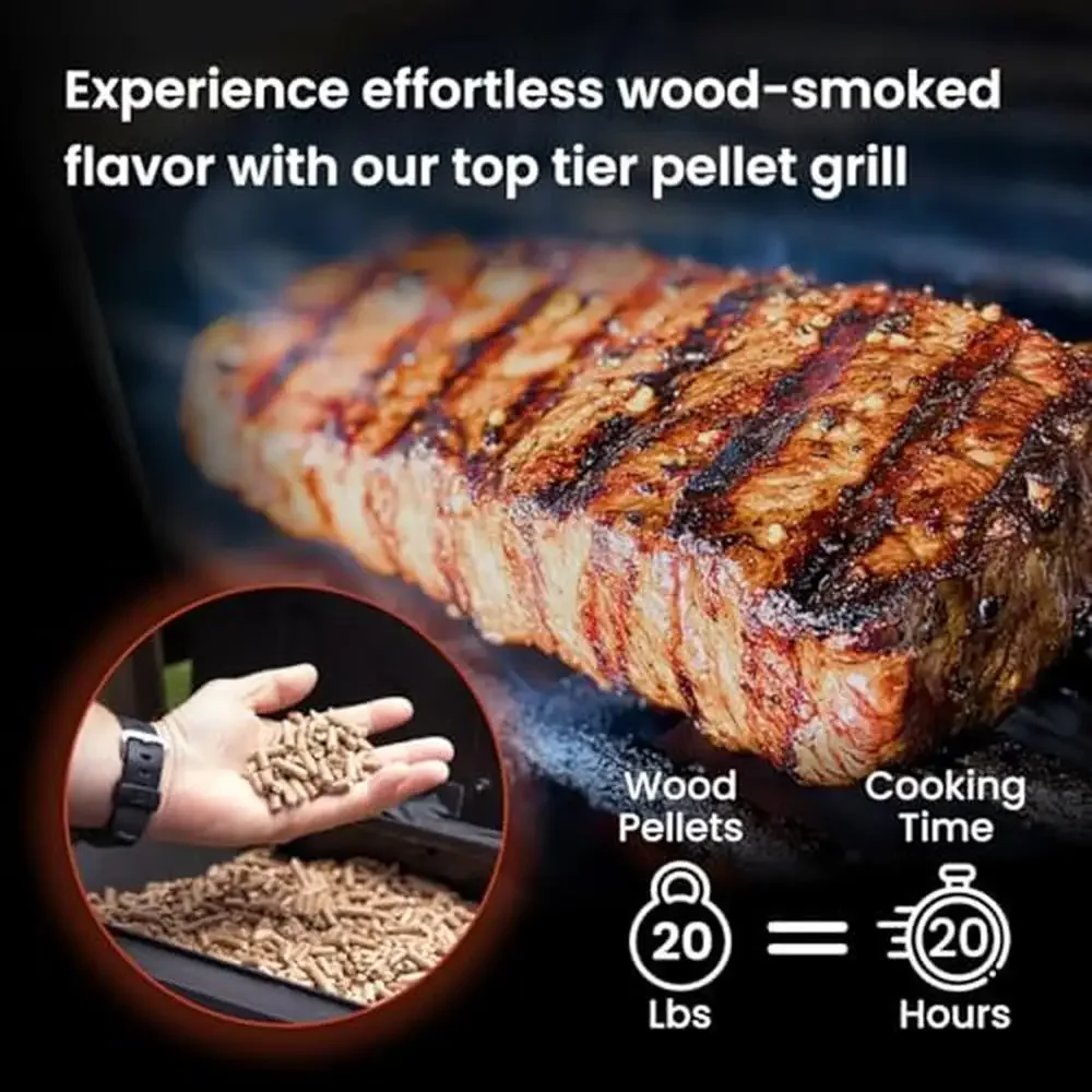 Sturdy steel construction with high-temperature powder coat finish makes the pellet grill long-lasting, bringing you years of ultimate wood-fired grilling experience.